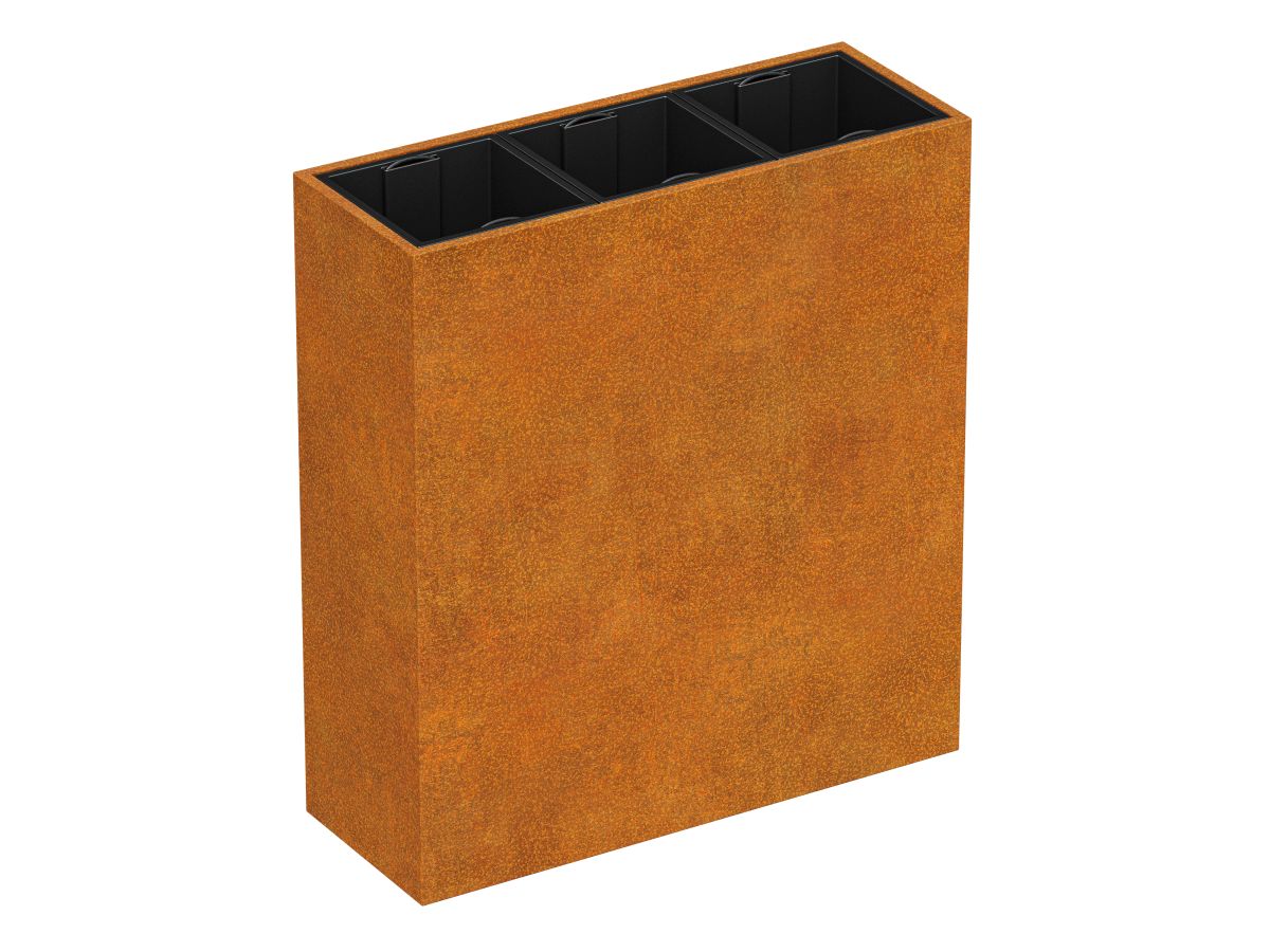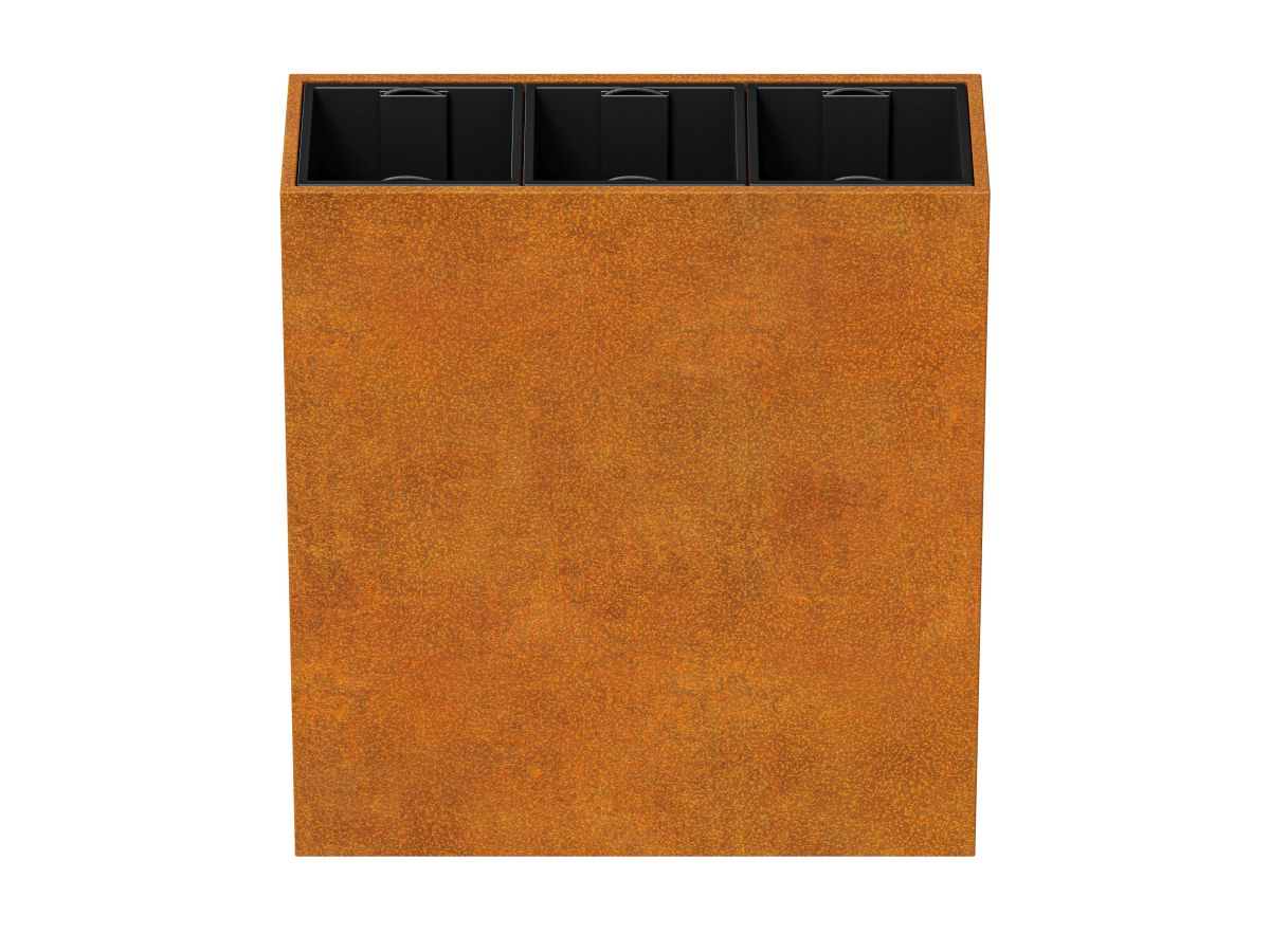 DEPO MINI 9 on corten terasest aiapot, mille paksus on 2 mm, mõeldud taimede istutamiseks plastist, eemaldatavatesse konteineritesse, mis on komplektis. Standardina on potil jalad.