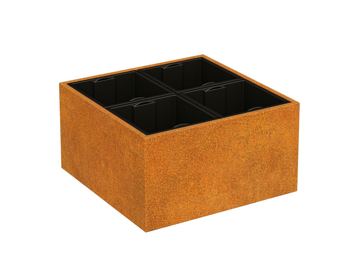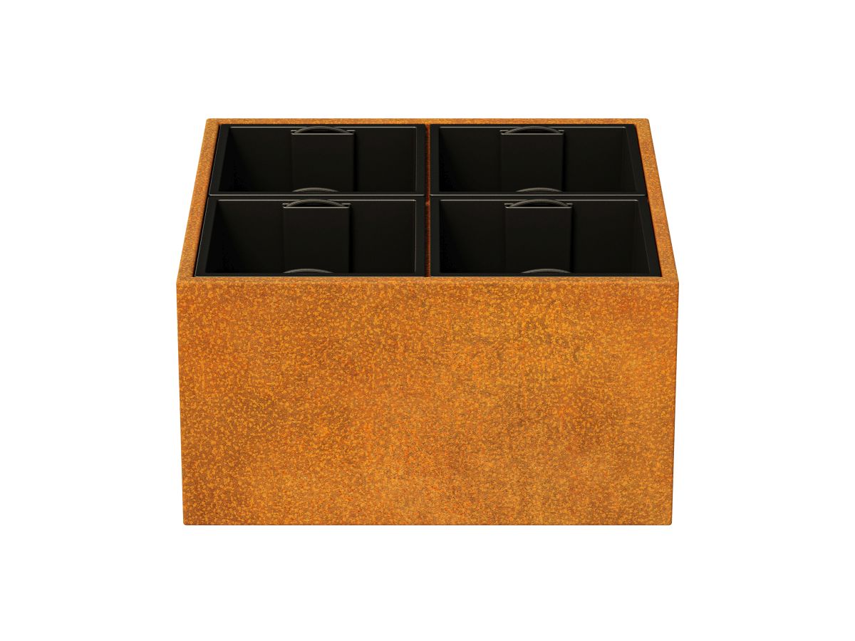 DEPO MINI IDE 1 on corten terasest aiapot, mille paksus on 2 mm, mõeldud taimede istutamiseks plastist, eemaldatavatesse konteineritesse, mis on komplektis. Standardina on potil jalad.
