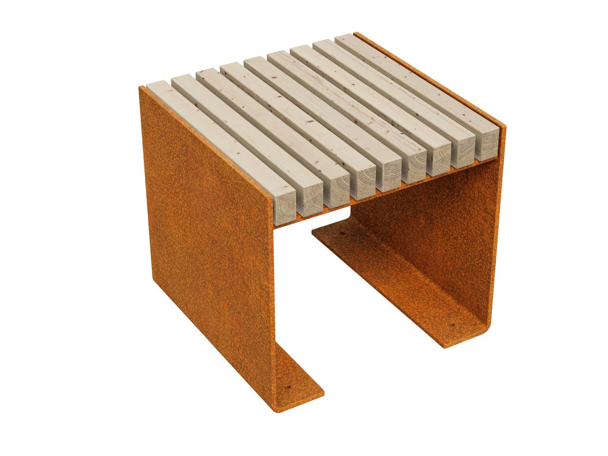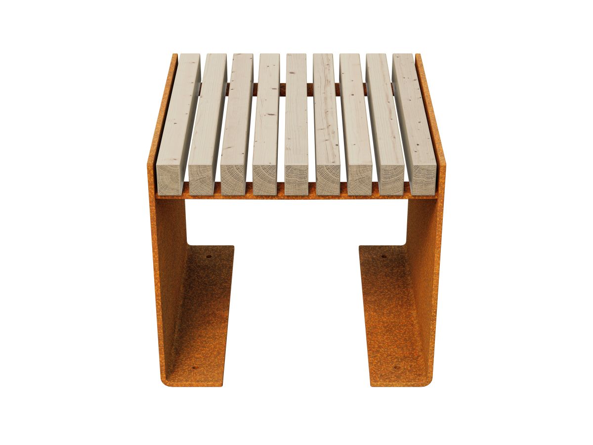 FLANCO A1 on puutarha/kaupungin penkki, joka on valmistettu 8 mm Corten-teräksestä. Vakiovarusteena on kuusipuusta valmistettu istuin, joka on suojattu kahdesti matalla lakalla. Varustettu rei’illä maahan kiinnittämistä varten.