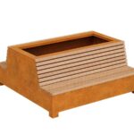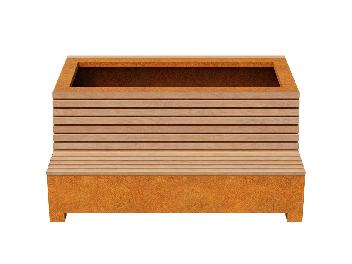 BASTIDOR 2 is a pot and a bench in one – the so-called bench-pot. It works great in the urban landscape, in markets, squares, city squares, parks and shopping malls. BASTIDOR 2 is part of a set from which you can create all kinds of shapes. It has a seat on one side. The standard seat is made of exotic wood, protected twice with matte varnish, so in reality the wood is darker than in the photo