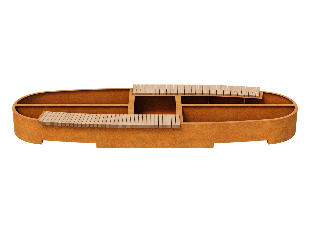 BASTIDOR 4 is a pot and a bench in one – the so-called bench-pot. It works great in the urban landscape, in markets, squares, city squares, parks and shopping malls. BASTIDOR 4 is part of a set from which you can create all kinds of shapes. It has a seat on one side. The standard seat is made of exotic wood, protected twice with matte varnish, so in reality the wood is darker than in the photo
