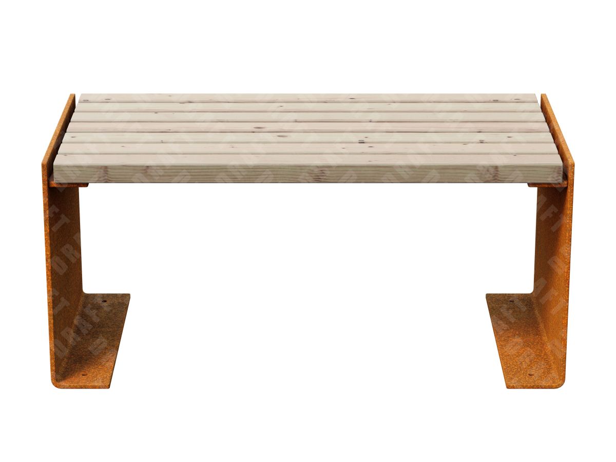 FLANCO B2 is garden / city bench is a solid, made of 8mm Corten steel. The standard seat is made of exotic wood, protected twice with matte varnish, so in reality the wood is darker than in the photo. Equipped with holes for mounting in the ground.