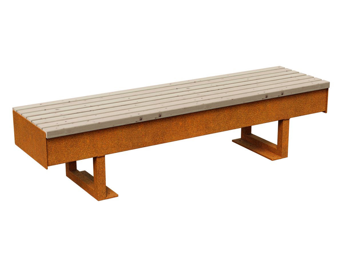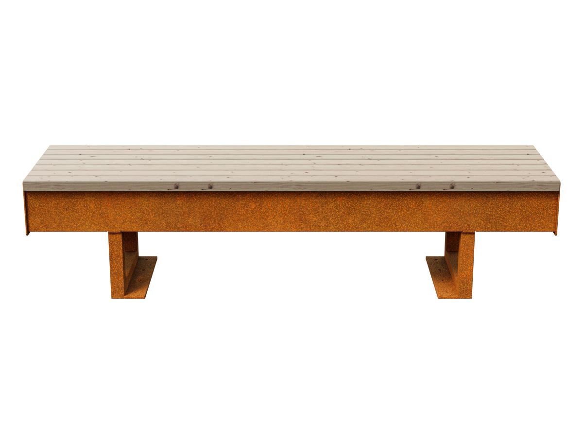 The GORDO 4 garden / city bench is a solid, made of 5mm Corten sheet metal. The standard seat is made of exotic wood, protected twice with matte varnish, so in reality the wood is darker than in the photo. Equipped with holes for mounting in the ground.