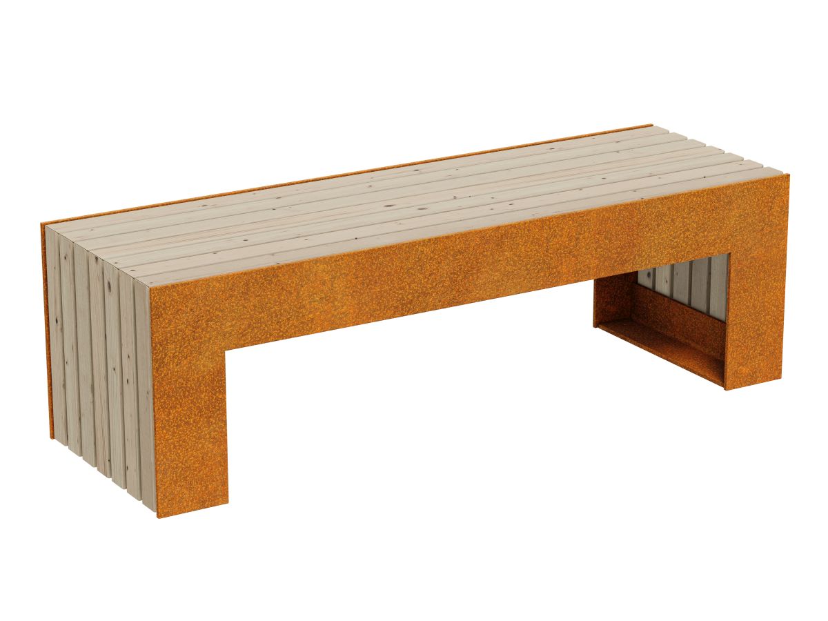 The MASETA 3 garden / city bench is a solid, made of 8mm Corten steel. The standard seat is made of exotic wood, protected twice with matte varnish, so in reality the wood is darker than in the photo. Equipped with holes for mounting in the ground.