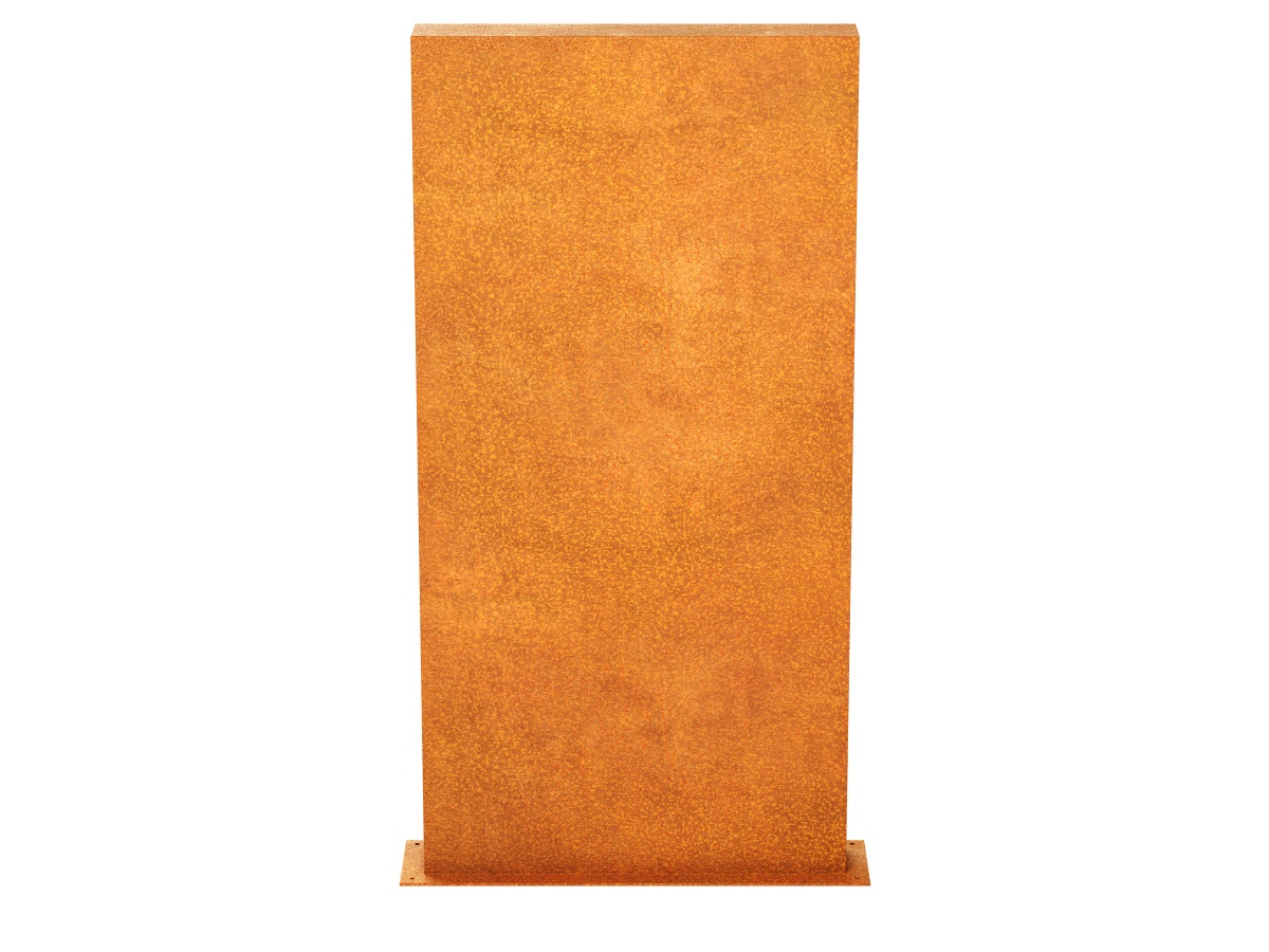 ESPADA C5 is a tall, narrow and uniform garden panel with back, which is also used as an element of fences, walls and walls. It is made of Corten steel 2 mm thick, has a base with mounting holes and a proportional number of reinforcements inside. The panel with back does not have a rear wall (on individual request, the panel with back can be closed from all sides, and additionally a pattern can be laser cut out).