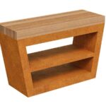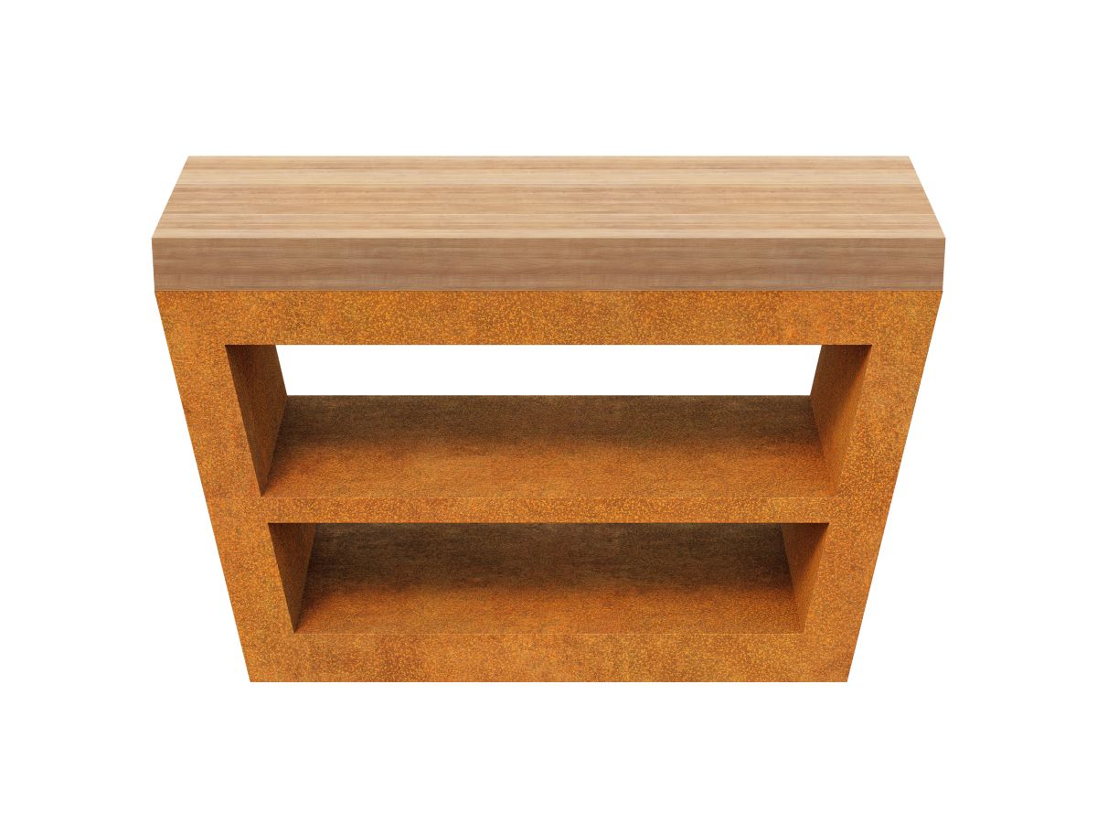 MESA 2 is a medium trapezoidal table made of corten steel. It perfectly complements the COCCINA series with an extra worktop, a shelf for accessories or a place for wood. The standard equipment includes adjustable legs, while it is possible to install wheels to make the table more mobile. It is perfect for tastings, presentations, festivals, or simply on the terrace or in the garden.