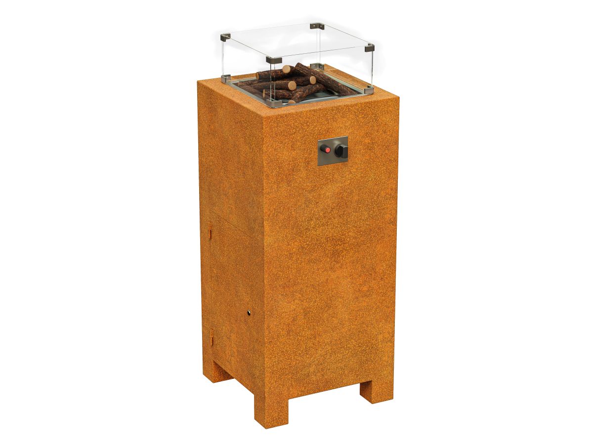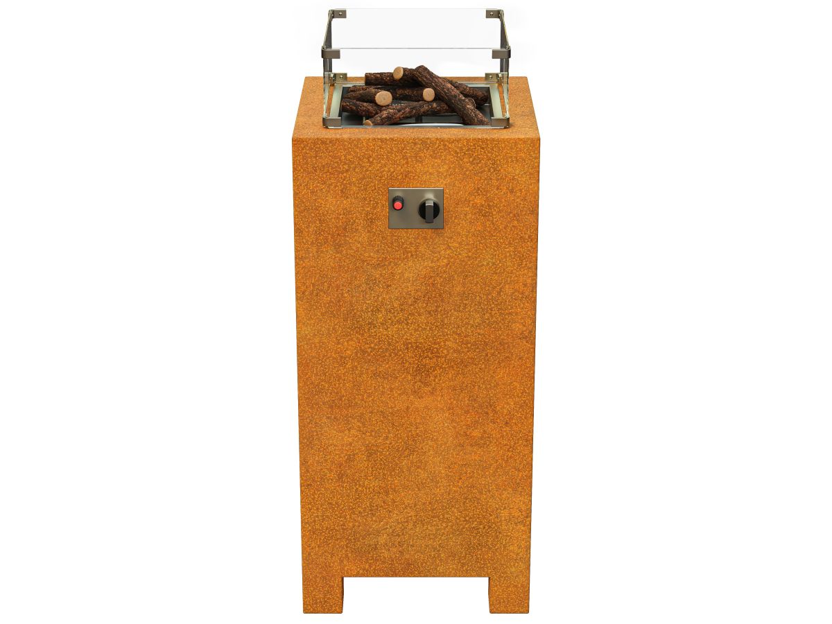 GASSO 1 is a high and narrow gas fireplace made of corten steel with a thickness of 2 mm. Equipped with a 4mm thick fireplace glass. It is perfect for gardens, patio, terrace, restaurant or office. After preparation – also for interiors. Equipped with all kinds of necessary equipment necessary to use a gas cylinder.