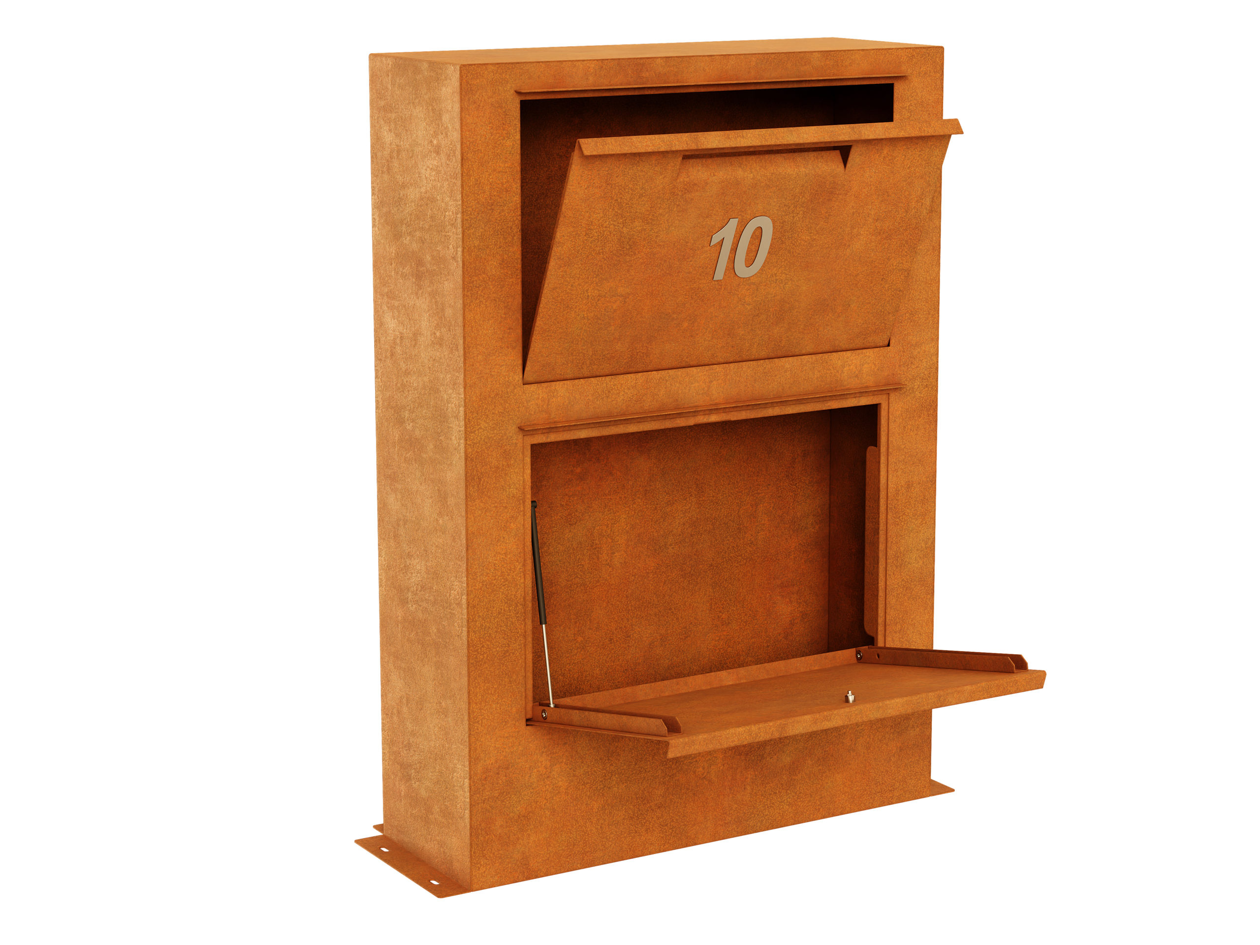 BUZON 6 is a durable, single, modern, rectangular letterbox with a home parcel locker function. It is made of corten sheet