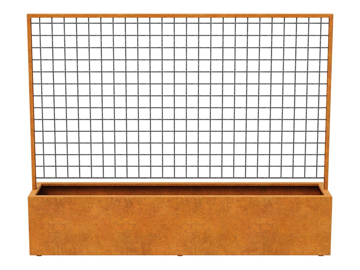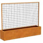 RED CENTRO 9 it is a large pot with a pergola in one. It is made of 2 mm corten steel. It has legs and drainage holes. Intended for restaurants, gardens, city old towns, terraces, balconies or common parts of development facilities.