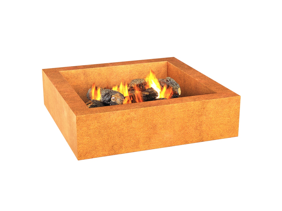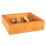 Hogar 1 is a square metal hearth. It was made of 4mm thick corten steel. The hearth made of Corten steel is very durable and requires no maintenance. The only thing we have to do is to clean the firewood from fuel residues. Corten hearth combines attractive design and practical application. Works great as a light and heat source on cooler days. The corten hearth will work in the garden or in the backyard terrace.
