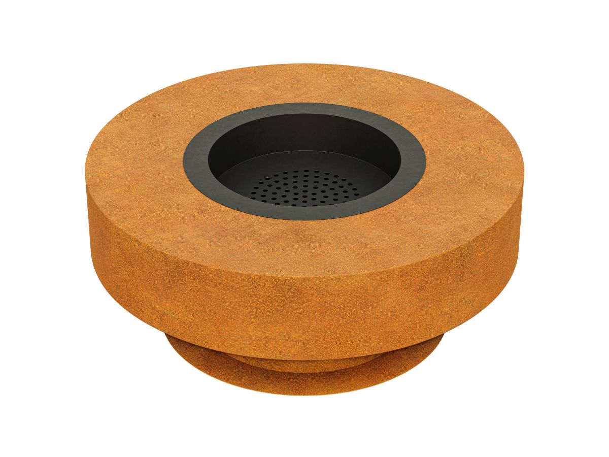 SOMBRERRO 5 is a high round metal hearth. It was made of 3mm thick corten steel. The hearth made of corten steel is very durable and does not require any maintenance. The only thing we need to do is to clean the furnace of fuel residues. Corten hearth combines attractive design and practical use. It is perfect as a source of light and warmth on cooler days. A corten hearth will be perfect for a garden or a backyard terrace.
