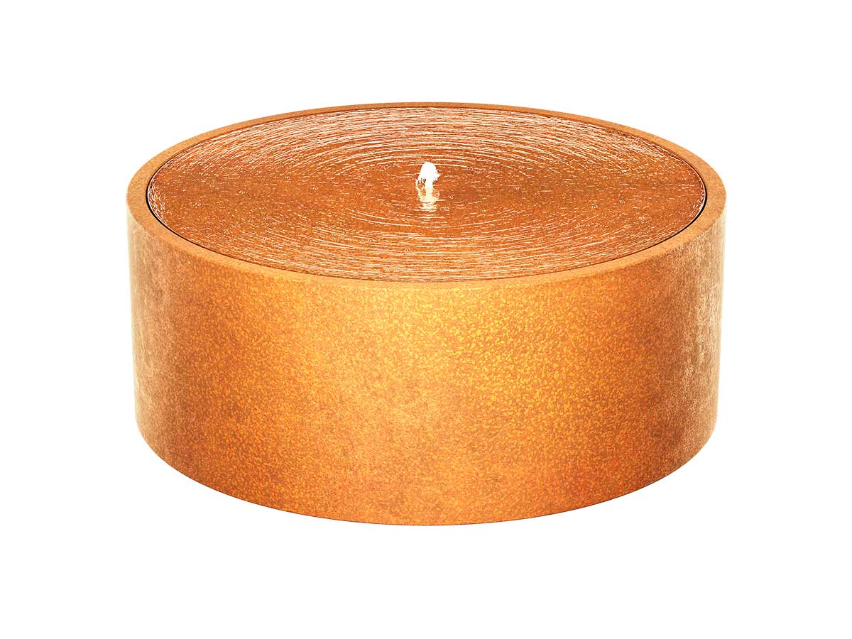 FUENTE FC6 is a closed-circuit garden fountain. It was made of 2mm thick corten steel. Fountains made of Corten steel are very durable and require no maintenance. The set includes a high quality water pump, and LED lights with a nozzle have been built in in the upper part. The set is ready to start – the only thing you need to do is pour water into the tank and plug in the power supply.