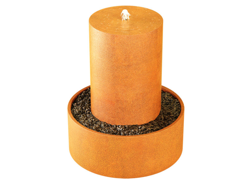FUENTE FCZ5 is a closed circulation garden fountain to be placed in the ground. It was made of 2mm thick corten steel. Fountains made of Corten steel are very durable and require no maintenance. The set includes a high quality water pump, and LED lights with a nozzle have been built in in the upper part. The set is ready to start – the only thing you need to do is pour water into the tank and plug in the power supply.