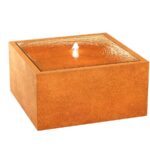 FUENTE FW2 is a closed-circuit garden fountain. It was made of 2mm thick corten steel. Fountains made of Corten steel are very durable and require no maintenance. The set includes a high-quality water pump, and LED lights with a nozzle have been built-in in the upper part. The set is ready to start – the only thing you need to do is pour water into the tank and connect the plug to the power supply.