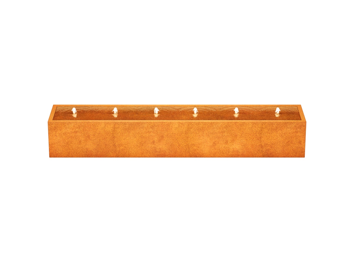 FUENTE FW5 is a closed-circuit garden fountain. It was made of 2mm thick corten steel. Fountains made of Corten steel are very durable and require no maintenance. The set includes a high-quality water pump, and LED lights with a nozzle have been built-in in the upper part. The set is ready to start – the only thing you need to do is pour water into the tank and connect the plug to the power supply.