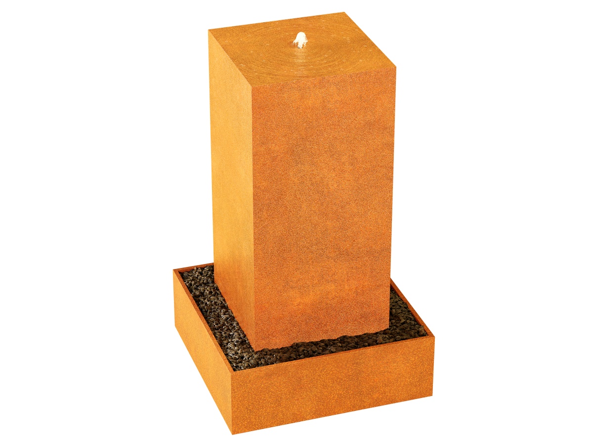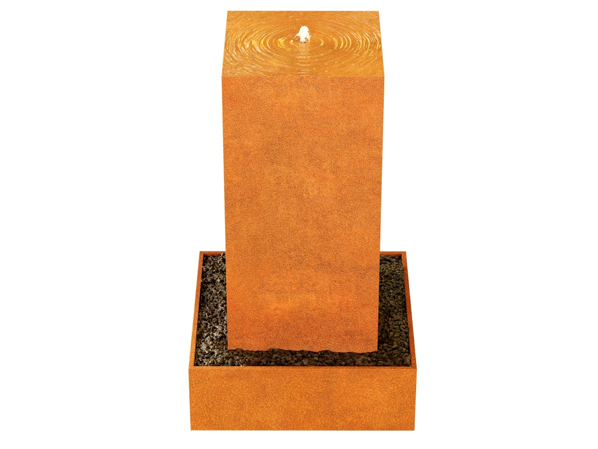 FUENTE FZ2 is a closed circulation garden fountain to be placed in the ground. It was made of 2mm thick corten steel. Fountains made of Corten steel are very durable and require no maintenance. The set includes a high-quality water pump, and LED lights with a nozzle have been built-in in the upper part. The set is ready to start – the only thing you need to do is pour water into the tank and connect the plug to the power supply.