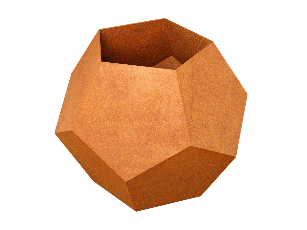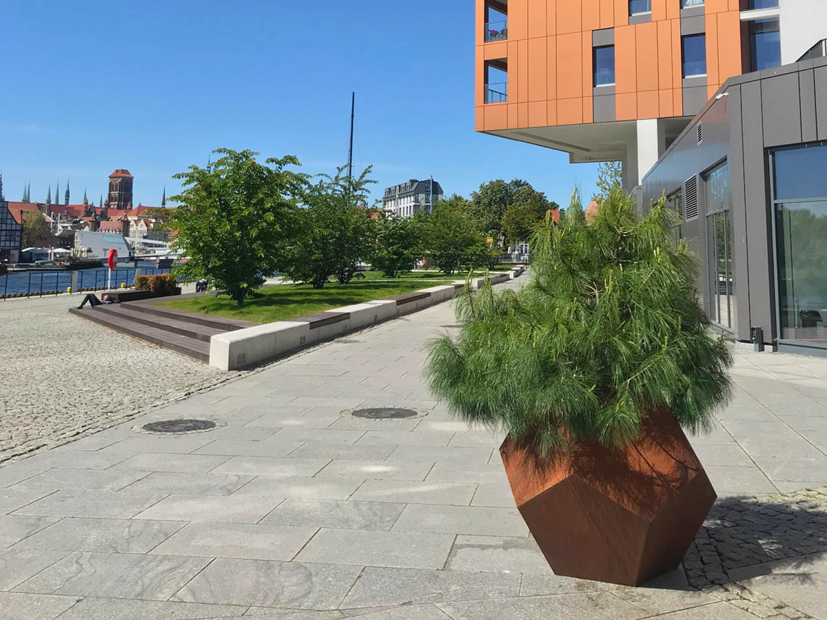 BOLA is a very large garden pot. It was made of 2mm thick corten steel. Often used as an urban pot. Pots made of Corten steel are very durable and require no maintenance. There are drainage holes in the bottom. The design of this block has been often appreciated by a wide range of architects. It can be used as a garden, balcony and terrace pot. It also fits perfectly into gazebos, patios, parks and urban areas. It works perfectly as a complement to the industrial, rustic, Norwegian, modernist and many other styles. The lump pot looks impressive, especially in plant compositions, e.g. in decorative flowers.