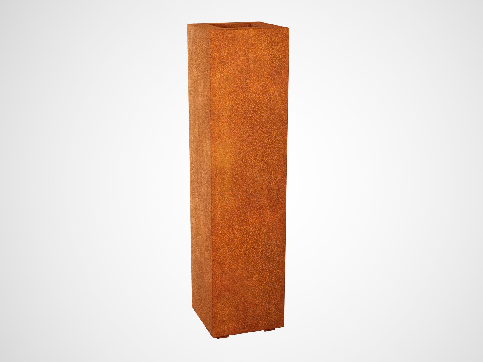 ALTO2 is a tall and square medium-sized garden pot. It was made of 2mm thick corten steel. As standard, the pot is equipped with drainage holes in the bottom and legs.