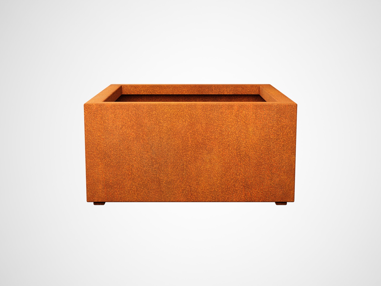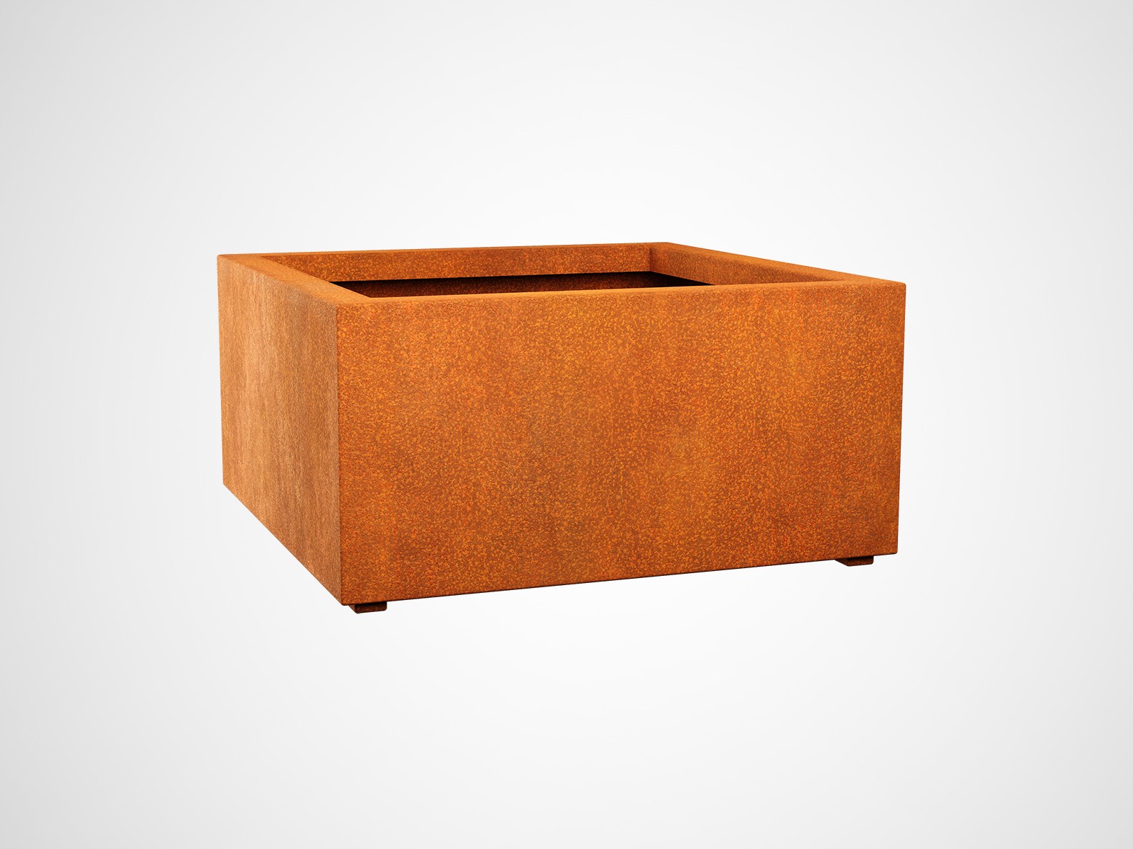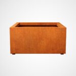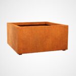 BAJO6 is a wide, low and square garden pot. It was made of 2mm thick corten steel. As standard, the pot is equipped with drainage holes in the bottom and legs.