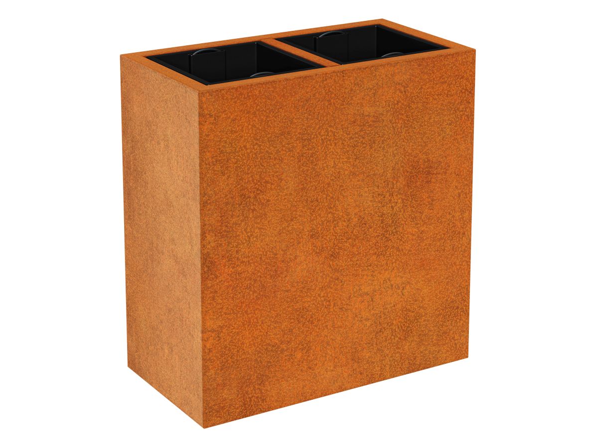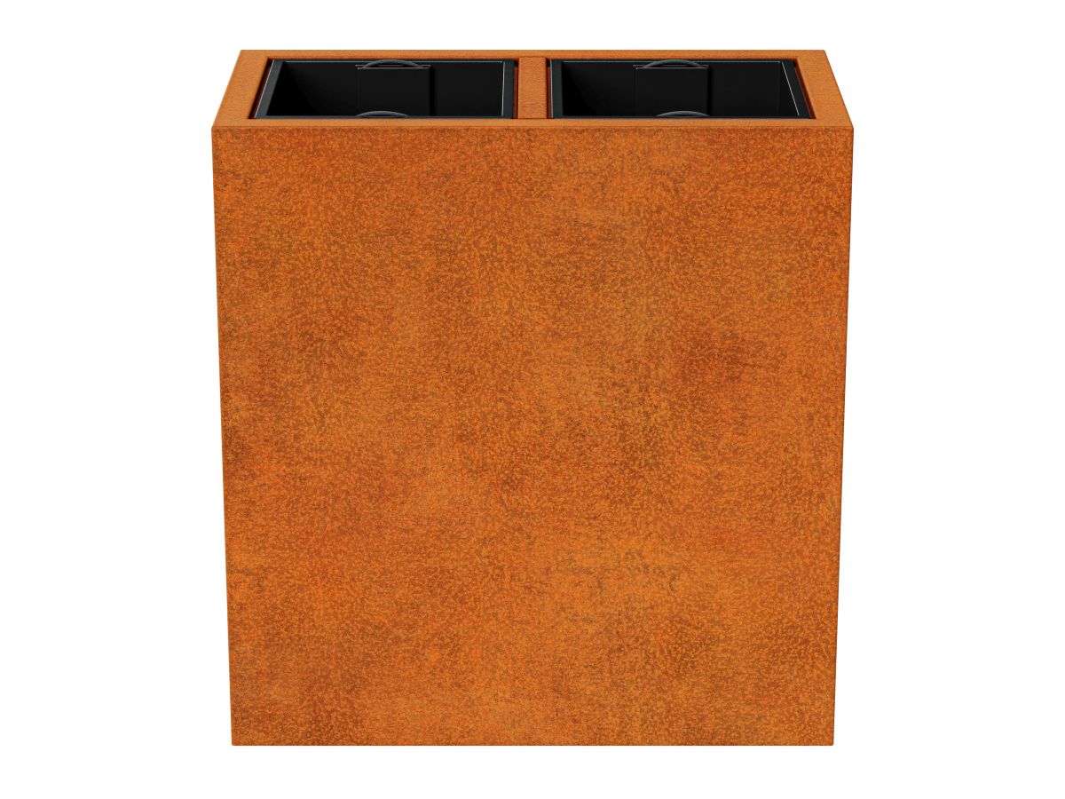 DEPO 7 is a garden pot made of corten steel with a thickness of 2 mm, intended for planting plants in plastic, removable containers, included in the set. As standard, the pot is equipped with legs.