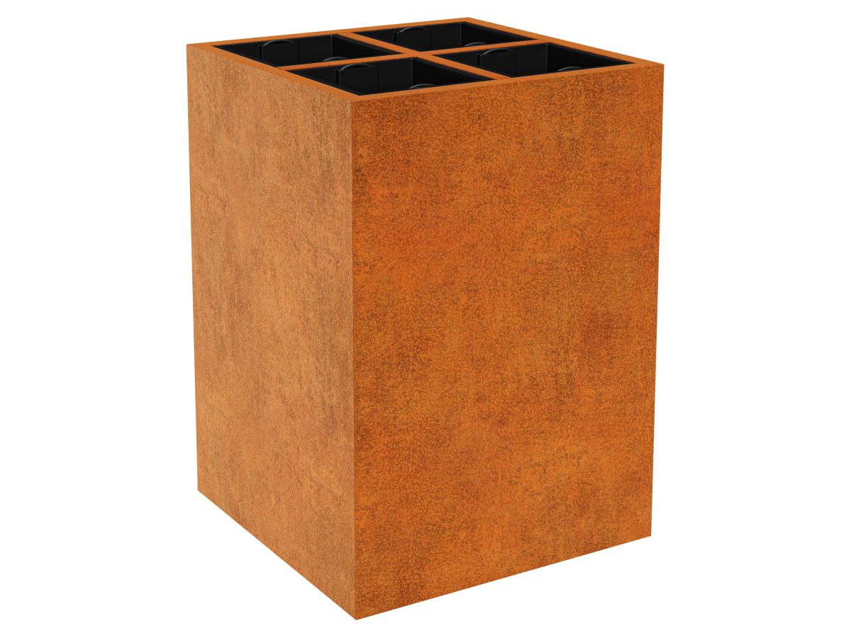 DEPO IDE 4 is a garden pot made of corten steel with a thickness of 2 mm, intended for planting plants in plastic, removable containers, included in the set. As standard, the pot is equipped with legs.