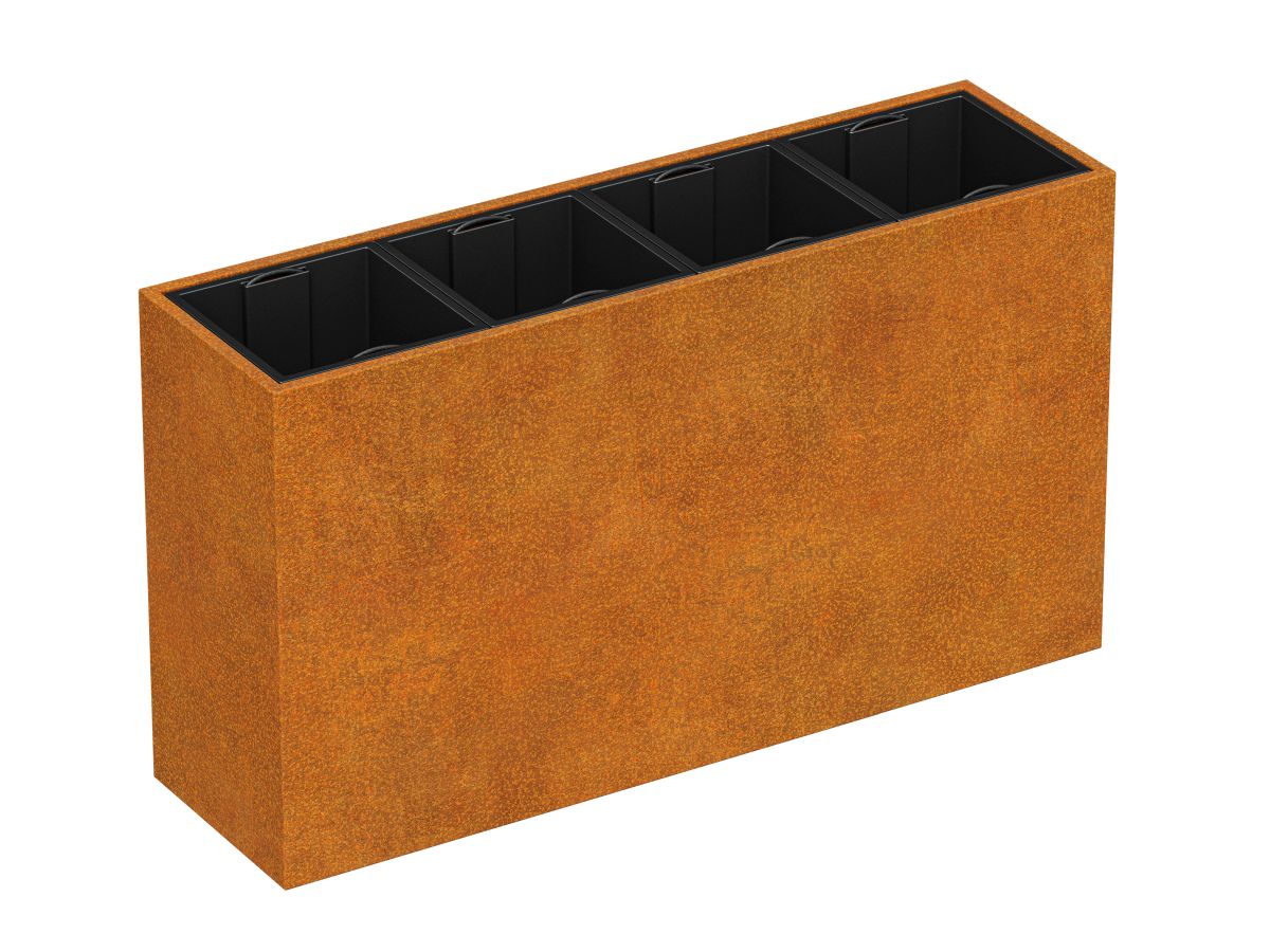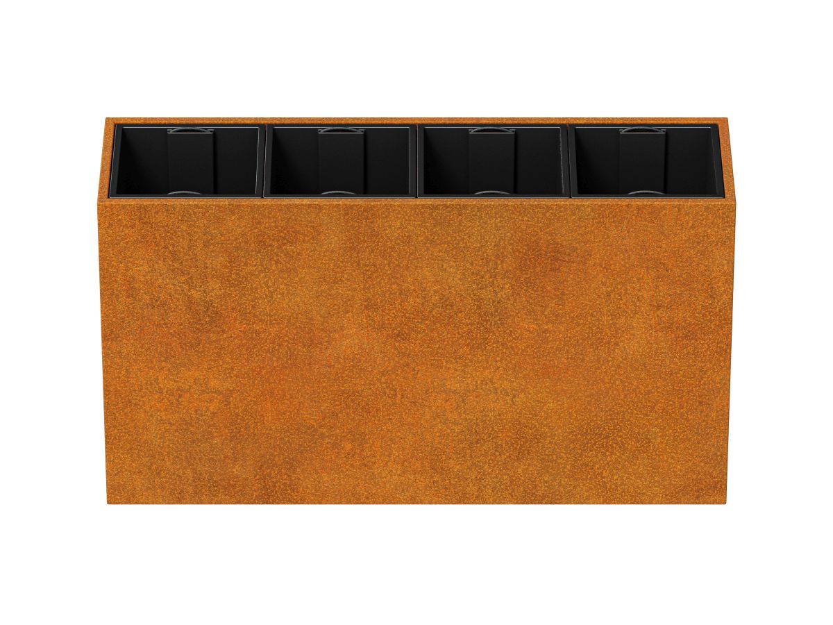 DEPO MINI 11 is a garden pot made of corten steel with a thickness of 2 mm, intended for planting plants in plastic, removable containers, included in the set. As standard, the pot is equipped with legs.