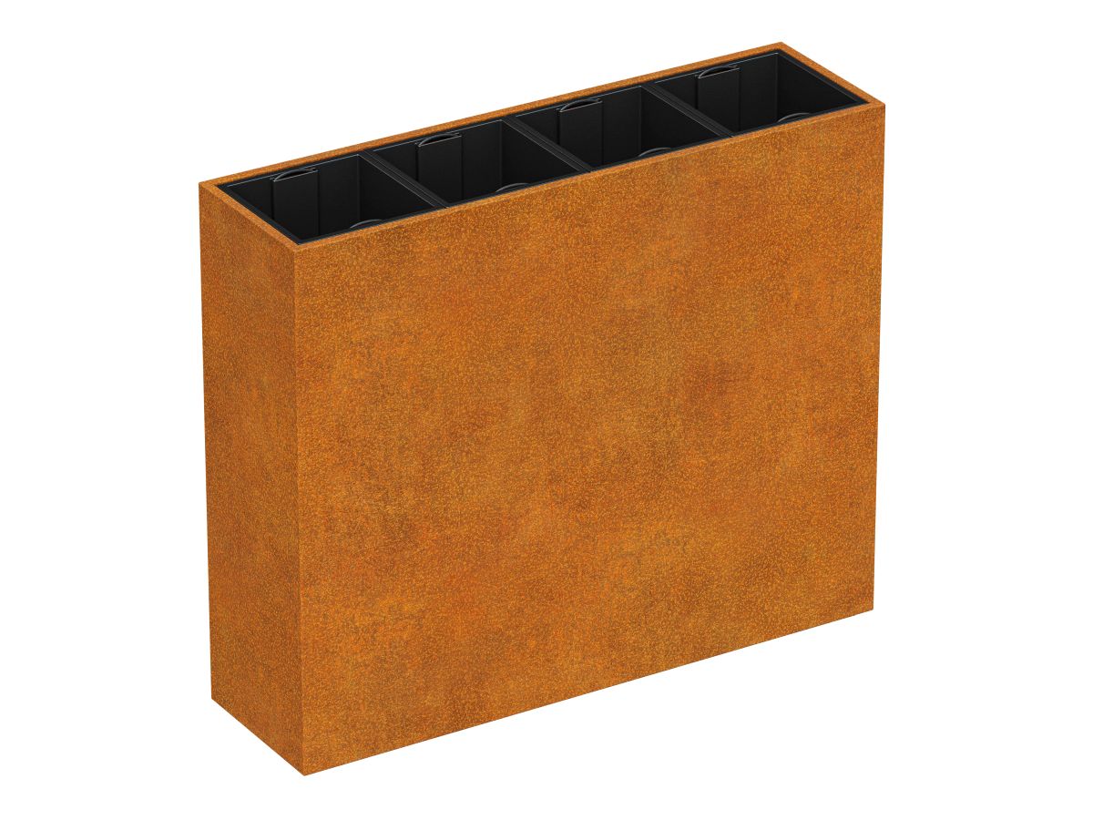 DEPO MINI 12 is a garden pot made of corten steel with a thickness of 2 mm, intended for planting plants in plastic, removable containers, included in the set. As standard, the pot is equipped with legs.