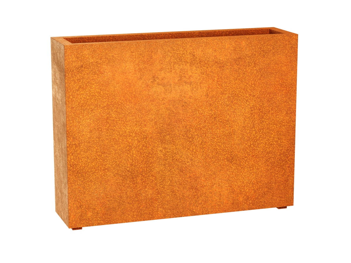 Estrecho 13 is a narrow garden pot intended for placing against the wall of a building. It was made of 2mm thick corten steel. The bottom has drainage holes and small feet. Design has been appreciated many times by a wide range of architects. Pots made of Corten steel are very durable and require no maintenance. It can be used as a garden, balcony and terrace pot. Ideally, after proper preparation, it also fits into office spaces. It works perfectly as a complement to the industrial, rustic, Norwegian, modernist and many other styles.