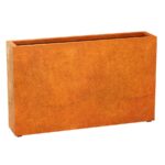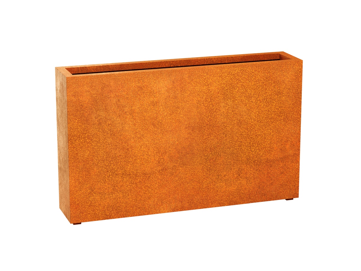 Estrecho 19 is a narrow garden pot intended for placing against the wall of a building. It was made of 2mm thick corten steel. The bottom has drainage holes and small feet. Design has been appreciated many times by a wide range of architects. Pots made of Corten steel are very durable and require no maintenance. It can be used as a garden, balcony and terrace pot. Ideally, after proper preparation, it also fits into office spaces. It works perfectly as a complement to the industrial, rustic, Norwegian, modernist and many other styles.