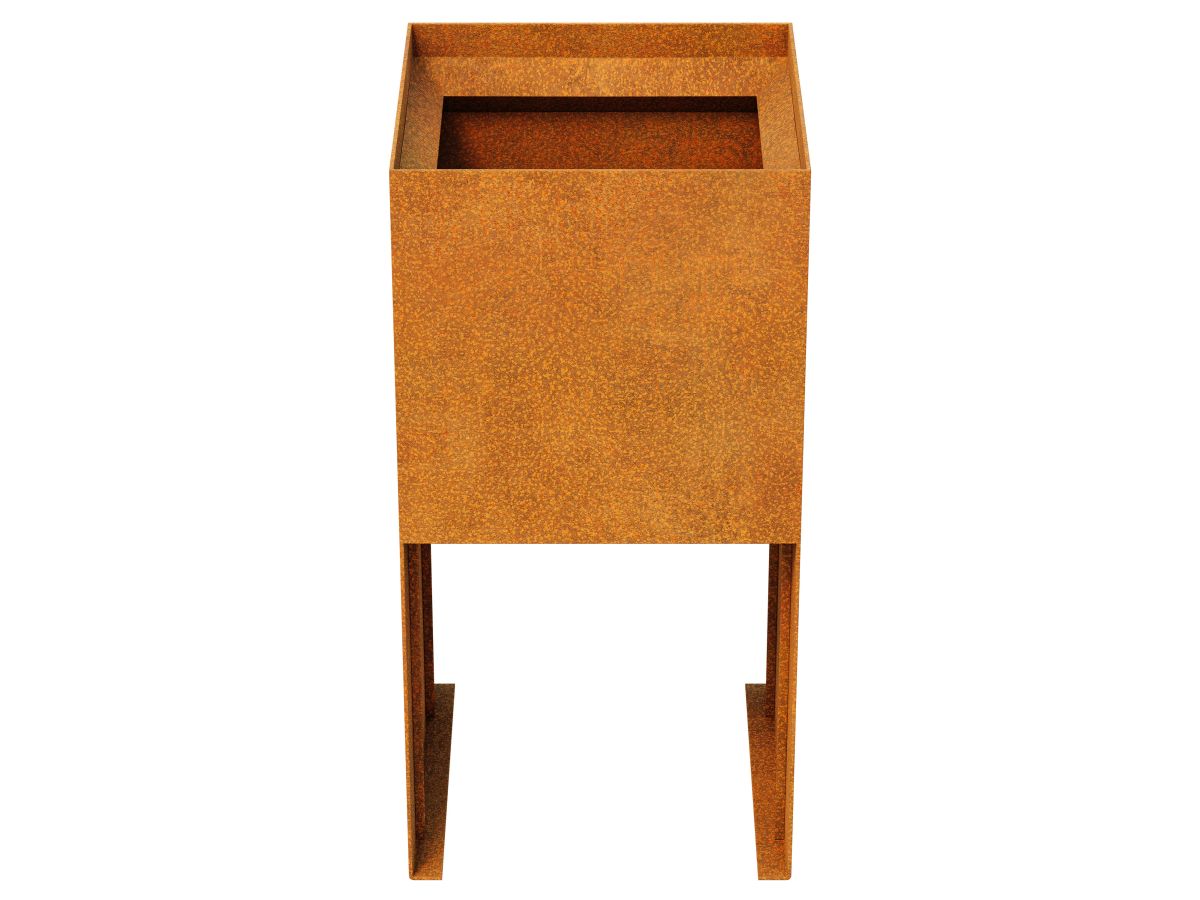 PLANTA 11 is a garden pot made of 2mm thick corten steel with a sloping edge and long supports. As standard, the pot is equipped with drainage holes in the bottom.